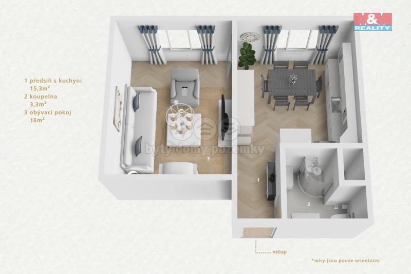 Nabízíme Vám k prodeji světlý byt 1+1 o výměře 38 m² po kompletní rekonstrukci, který se nachází na konci ulice Jelínkova ve městě Sokolov. Byt je situován v 1. patře udržovaného domu s plastovými okny a je připraven ihned k nastěhování bez nutnosti dalších investic. Dispozici tvoří prostorný pokoj s plovoucí podlahou a výhledem do přírody, dále kuchyň s linkou a elektrickým sporákem, a koupelna vybavená sprchovým koutem a pračkou. V kuchyni je položena dlažba pro snadnou údržbu. K bytu náleží sklepní kóje, což zajišťuje dostatek úložného prostoru. Parkování je možné přímo před domem, samozřejmostí je i kompletní občanská vybavenost v dosahu – obchody, služby, školy i zastávka MHD. Tento byt je ideální volbou pro jednotlivce či pár, kteří hledají komfortní bydlení v příjemné lokalitě. Pro více informací nebo sjednání termínu prohlídky nás neváhejte kontaktovat. S financováním Vám zdarma a bez závazku pomohou naši odborní poradci.