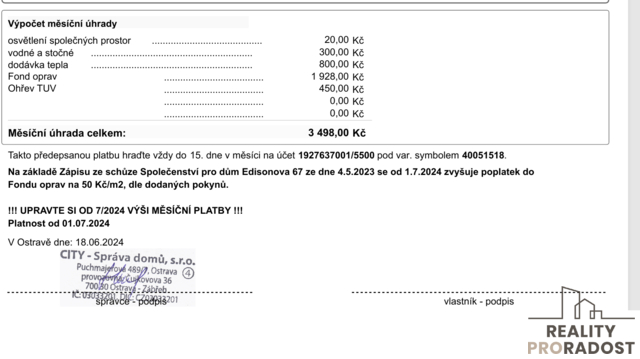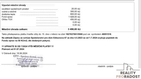 Byt 1+1 na ulici Edisonova, Hrabůvka Jste pár, singl nebo investor, který hledá byt v nízké zástavbě, v klidné lokalitě ? Tak tento byt 1+1 s balkónem v osobním vlastnictví o výměře 35 m2 + sklep ve 3. nadzemním podlaží (2. patře) na ulici Edisonova v Ostravě Hrabůvce, může být pro vás vhodnou volbou. Náklady na bydlení jsou ve fotu . Info k bytu: - Byt je v původním, ale zachovalém stavu -V bytě je francouzské okno - koupelna je zděná s oknem - k dispozici je sklep 2,0 m - orientace bytu je na 2 světové strany - nad vámi již žádní hluční sousedé - doporučuji spíš mladším ročníkům, jelikož v domě není výtah, na druhé straně si udržíte skvělou fyzičku Info k domu: - dům je po kompletní revitalizaci - dům nemá výtah Okolí domu je velmi hezké a plné zeleně. Pár minut od domu se nachází tramvajová i autobusová zastávka, zdravotní středisko, nákupní centrum Hrabůvka, několik restaurací .... prostě vše, na co si vzpomenete. V případě více zájemců bude nemovitost prodána nevyšší nabídce a majitel si vyhrazuje právo vybrat kupujícího na základě jím zvolených kritérií. Veškeré zveřejněné údaje obsažené v tomto inzerátu mají pouze informativní charakter a nejsou nabídkou ve smyslu § 1731 nebo § 1732 občanského zákoníku, ani se nejedná o veřejný příslib dle § 1733 občanského zákoníku. Zaujal vás tento byt a rádi byste ho viděli osobně? Není nic jednoduššího, než zavolat Na setkání s vámi se těší Z důvodů probíhající dovolené mimo EU (9.1- 3.2)mě bude zatupovat kolega Jiří Vank Petra Janštová Realitní specialista
