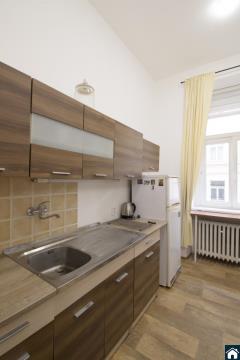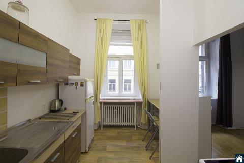 Exklusivně nabízíme byt ke koupi ideální jako investiční - v centru Prahy koncipovaný jako 1+1.. V bytě je standardní kuchyňská linka s elektrickým sporákem a lednicí. V koupelně je vana společně s toaletou. Dále je v koupelně kombinovaný kotel, který zajišťuje ohřev teplé vody a také vytápí byt. V obytné místnosti je vestavné patro na spaní, sedací souprava a komoda. Vše je možné vystěhovat. Podlahovou krytinou jsou parkety, lino a dlažba. Výborná dostupnost M Florenc. Byt se nachází ve zvýšeném přízemí cihlového domu. K bytu patří komora na chodbě proti bytu a sklepní kóje v suterénu. Více informací rádi poskyteneme na osobní prohlídce, případně emailem.