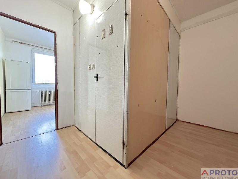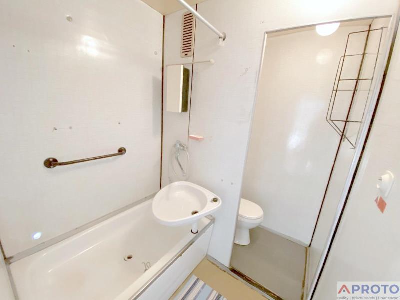 Dispozice: neprůchozí obývací pokoj, kuchyň s místem pro jídelní kout, prostorná chodba, koupelna s vanou a WC. Orientace jihozápad.
