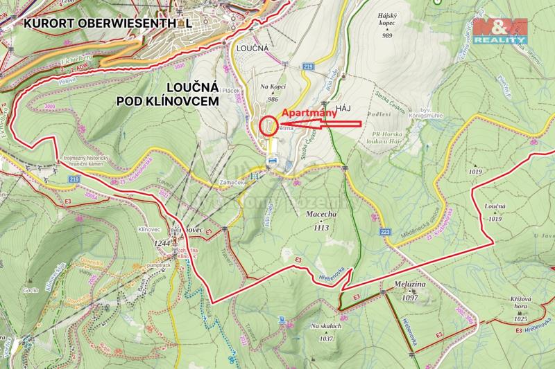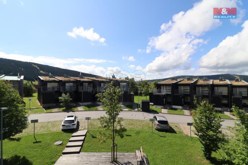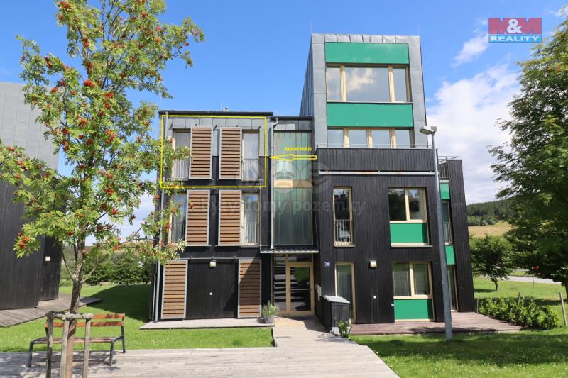 Prodej plně vybaveného apartmánu o dispozici 1+kk + podkrovní ložnice, v komplexu moderních domů, v lyžařském středisku, v obci Loučná pod Klínovcem. Areál je uzavřen, vjezd se závorou s vlastními kódy. Každý má zde své parkovací místo a podíly na pozemcích přilehlých k domu. Apartmán o dispozici 1+kk s podkrovní ložnicí, o výměře 25,4 m2 se nachází ve 2. patře cihlového domu a je ideální jak pro osobní užívání, tak jako investiční příležitost. Najdete zde skvělé zázemí pro horské sportovní vyžití. Apartmán vybaven manželskou postelí v podkroví. Kuchyňský kout je kompletně zařízen, včetně lednice, myčky a mikrovlnné trouby. Koupelna se sprchovým koutem, umyvadlem a WC. Vstup do apartmánu je malou předsíní se šatní skříní a držáky na lyže. Apartmán má zabezpečovací zařízení, vlastní vytápění elektrokotlem, s radiátory, a s dálkovým ovládáním telefonem. Ohřev vody zajišťuje bojler. V přízemí domu box na obuv a drobné potřeby. S financováním Vám pomůže naše hypoteční centrum.