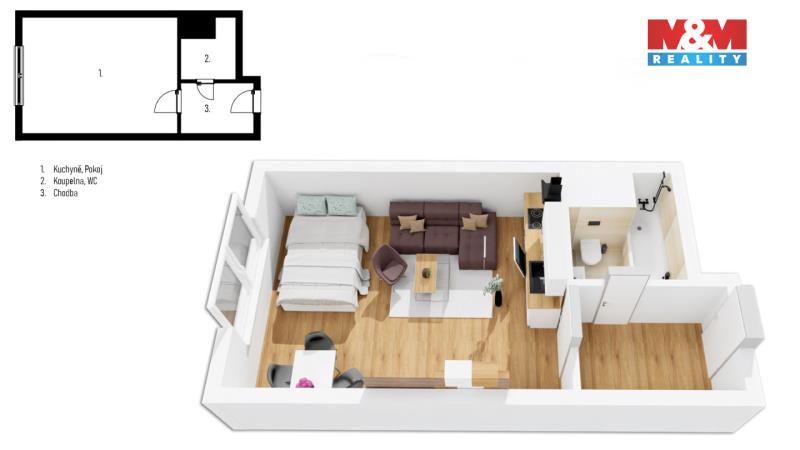 K prodeji, Byt 1+kk, Pardubice, Pod Studánkou
