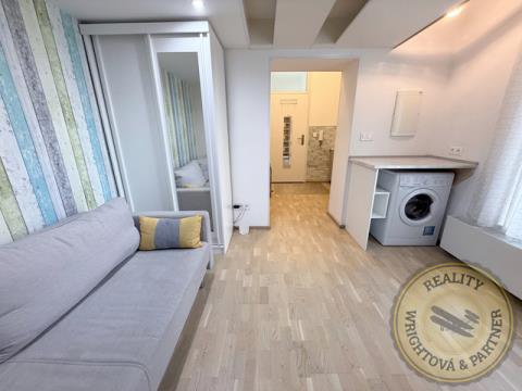 Nabízíme k prodeji byt o dispozici 1+kk s vestavěným patrem na spaní, situovaný v klidné a příjemné lokalitě u Libeňského zámku, v docházkové vzdálenosti od řeky Rokytky a stanice metra Palmovka. Byt se nachází v třípodlažním domě a díky mimořádné výšce stropu je řešen jako mezonet s praktickým vestavěným patrem. Horní část slouží jako ložnice o velikosti cca 9 m², kde je k dispozici také skříň a střešní okno, které prostor příjemně prosvětluje. Toto řešení přirozeně odděluje klidovou část od obytného prostoru a dodává bytu vzdušnost i osobitý charakter. Koupelna je vybavena zděným sprchovým koutem a toaletou. Dům i byt prošly kompletní rekonstrukcí v roce 2017 (nové rozvody, elektroinstalace, střecha i dokončení bytových jednotek), díky čemuž kombinují charakter původní zástavby s moderním standardem bydlení. Byt je ve velmi dobrém stavu, orientovaný na jednu světovou stranu, a prodává se včetně vybavení dle fotografií. Je tak připraven k okamžitému užívání nebo jako zajímavá investiční příležitost k pronájmu. Výhodou jsou také nízké provozní náklady 1916,-Kč/měsíc. Lokalita nabízí kompletní občanskou vybavenost – obchody, služby i zeleň v bezprostředním okolí. Tramvajová zastávka Libeňský zámek je pár kroků od domu, metro Palmovka cca 5 minut chůze. Do centra se dostanete přibližně za 8 minut. Pro více informací nebo domluvení prohlídky kontaktujte makléřku.