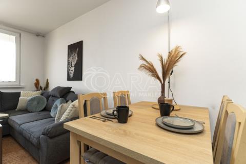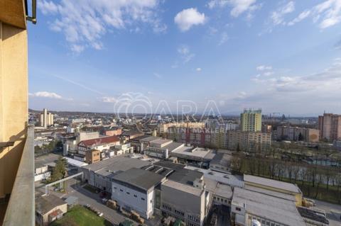 Jedním z benefitů bytu je jeho umístění v nejvyšším patře, které nabízí krásný výhled na Ostravu i Beskydy. Díky balkonu, který se otevírá směrem ven, působí byt opticky vzdušněji a nabízí příjemné rozšíření prostoru, což je u menší dispozice velkou výhodou.