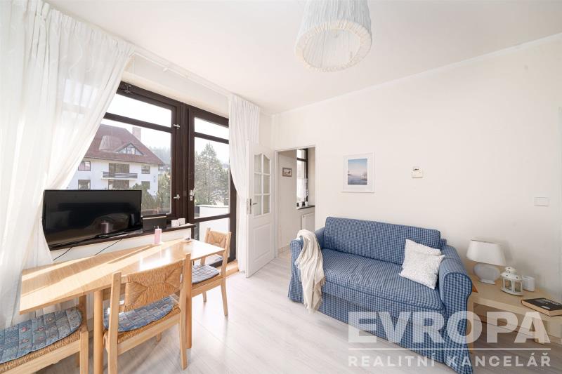Exkluzivně nabízím k prodeji byt 1+kk v osobním vlastnictví o rozloze 34 m2 v Harrachově, části nazývané Klondajk. Byt se nachází ve třetím podlaží, resp. druhém patře bytového domu. Byt je vybaven kuchyňskou linkou, jídelním stolem se židlemi, sedací soupravou, televizorem a sklápěcím dvoulůžkem, vestavěnou skříní. Sociální zařízení tvoří standartně WC, umyvadlo a sprchovým kout. Topení a ohřev TUV je plynovým kotlem. Byt má balkón s výhledem do parčíku mezi domy. K bytu patří sklepní kóje. Parkování u domu. 100 m od domu se u hypermarketu Norma napojíte na silnici vedoucí do Polska, kde najdete také širokou nabídku obchodů, tržišť a také možností sportovního vyžití. Harrachov je sportovní a kulturní centrum Západních Krkonoš s úplnou občanskou vybaveností, supermarkety a obchody se sportovním a ostatním zbožím. Ideální podmínky pro zimní sporty, sjezdové lyžování na „Čerťáku“, na běžkách se dostanete na hřebeny Krkonoš, Rokytnice nad Jizerou je „za kopcem“. Léto láká na turistické výlety údolím Mumlavy, k Vosecké Boudě, Violíku atd., na golf na Mýtinách. Rovněž návštěva hornického muzea, Sklárny Novosad skýtá nevšední zážitek. Z Harrachova je možné si také projít Jizerské Hory, projdete Novosvětským sedlem, přes Kořenov do Hejnic a ostatních lokalit Jizerských hor. Byt je celoročně obyvatelný s veškerým komfortem a nízkými provozními náklady cca 2.000, Kč/měs., ale i jako investiční je také ideální. Vzhledem k široké škále činností v Harrachově a okolí jej doporučuji jako jedinečnou možnost zhodnocení finančních prostředků. Je volný ihned.