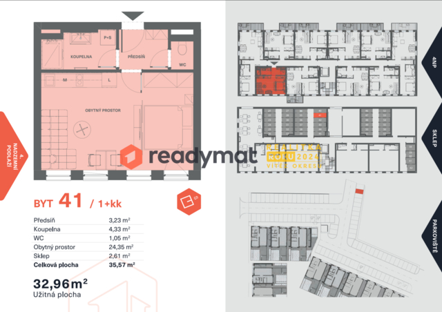 • 1+kk/32,9 m² užitné plochy, sklep 2,61 m²