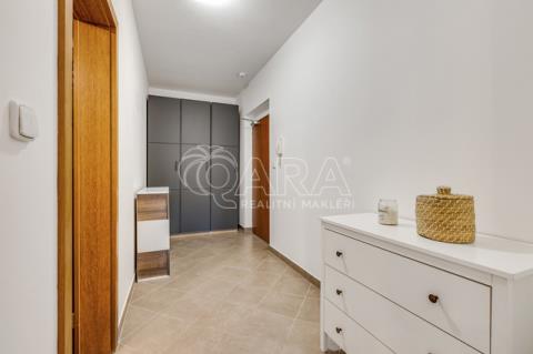 Jednotka, která prošla tento měsíc revitalizací, se nachází ve zvýšeném přízemí. Stejně jako prostorná komora, která je praktickým bonusem pro budoucí majitele, kteří díky ní budou mít dostatek úložného prostoru.