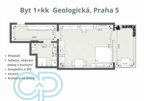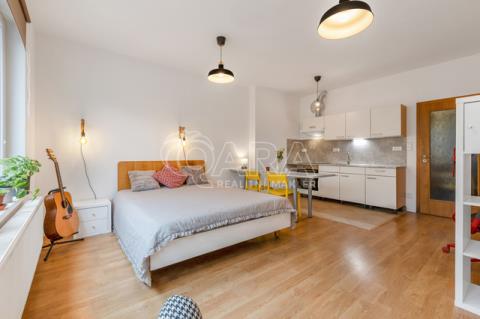 V zastoupení vlastníků nabízím k prodeji velmi příjemný byt o dispozici 1+kk (39,6 m²) s terasou 9m2 orientovanou do dvora. Nachází se v ulici Geologická, uprostřed klidné a vyhledávané části pražského Barrandova. Byt se nachází v rezidenčním projektu z roku 2012.