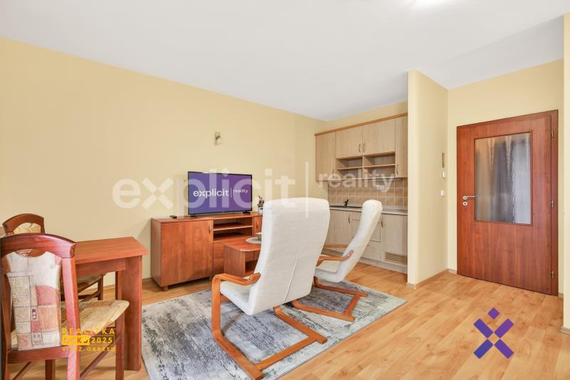 Byt se nachází ve třetím podlaží, které poskytuje dostatek soukromí a klidné prostředí. Dispozice je prakticky řešena. Ze vstupní chodby je přístup do hlavního obytného prostoru s kuchyňským koutem. Jednotka je orientována na severovýchod, což zajišťuje příjemné světelné podmínky bez nadměrného přehřívání v letních měsících.