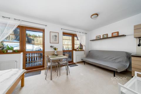 Z obýváku přímo na sjezdovku! Stylový apartmán 1+kk (36,8 m²) s terasou (7 m²), sklepem a parkováním – Prkenný Důl Hledáte místo, kde ranní kávu vypijete s výhledem na zasněžené svahy a hned poté nasadíte lyže přímo u domu? Tento precizně udržovaný apartmán v žádané lokalitě Žacléř – Prkenný Důl je přesně pro vás. Hlavní přednosti a lyžařský ráj na dosah: • Ski-in/Ski-out přímo v místě: Bydlíte přímo u sjezdovek areálů Bret a Arakis, které jsou v docházkové vzdálenosti od domu. • Největší resort v ČR za rohem: Pokud zatoužíte po nejdelších sjezdovkách v Česku, do Janských Lázní (SkiResort Černá hora) dojedete autem za pouhých 20–25 minut (cca 18 km). Máte tak na výběr mezi klidem v Prkenném Dole a špičkovým zázemím největšího skiareálu v zemi. • Unikátní parkování: K bytu náleží vlastní parkovací stání přímo u budovy – maximální komfort i v zimních měsících. • Vybavení: Vestavěný nábytek je součástí ceny, ostatní vybavení může zůstat kupujícímu zdarma jako bonus, nebo bude vystěhováno • Budoucí zhodnocení: Probíhá dostavba dálnice D11 (Praha – Trutnov – Polsko) s plánovaným dokončením cca 2027–2028, která výrazně zlepší dostupnost oblasti a zvýší hodnotu nemovitosti. Dispozice a parametry (celkem 36,8 m² + terasa 7 m²): Byt se nachází v moderním apartmánovém domě (rok výstavby 2001) a je ve vynikajícím stavu: • Obývací pokoj s kuchyňským koutem (22,14 m²): Kuchyňská linka se sklokeramickou deskou, dřezem, lednicí, mrazákem a mikrovlnkou. • Slunná terasa (7 m²): Ideální pro letní posezení nebo zimní relaxaci s výhledem na přírodu. • Koupelna (4,37 m²): Vybavena vanou, otopným žebříkem a prostorem pro pračku. • Praktické zázemí: Samostatné WC (1,44 m²), chodba se dvěma vestavěnými skříněmi (7,32 m²) a komora (1,53 m²) s elektrickým kotlem a bojlerem Dražice. • Příslušenství: K bytu náleží sklepní kóje (2,3 m²) pro bezpečné uložení lyží a kol. Lokalita a využití: Prkenný Důl je vstupní branou do východních Krkonoš, nabízející klidnější atmosféru, tenisové kurty i wellness v okolí. Apartmán je ideální jako „druhý domov“ i jako investice s vysokým potenciálem pro celoroční krátkodobé pronájmy. Přijeďte se přesvědčit osobně!