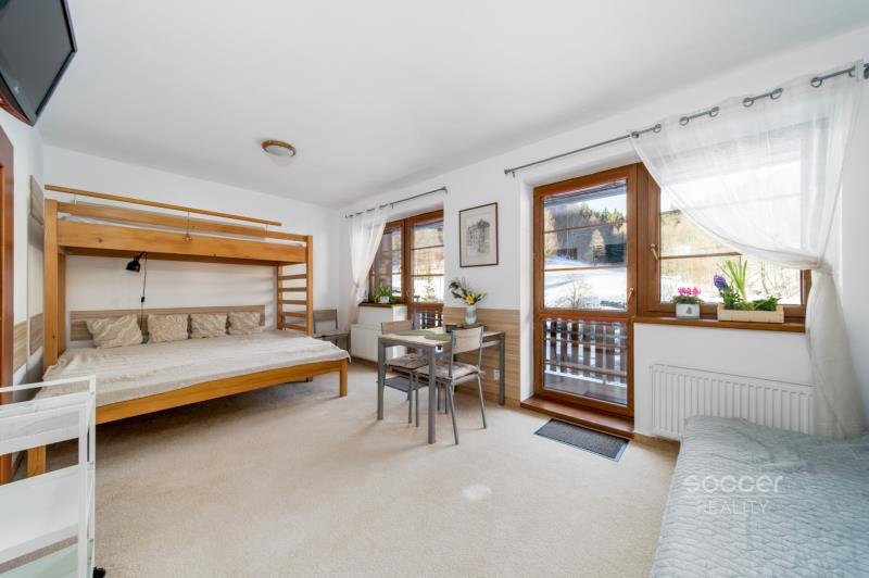 Z obýváku přímo na sjezdovku! Stylový apartmán 1+kk (36,8 m²) s terasou (7 m²), sklepem a parkováním – Prkenný Důl Hledáte místo, kde ranní kávu vypijete s výhledem na zasněžené svahy a hned poté nasadíte lyže přímo u domu? Tento precizně udržovaný apartmán v žádané lokalitě Žacléř – Prkenný Důl je přesně pro vás. Hlavní přednosti a lyžařský ráj na dosah: • Ski-in/Ski-out přímo v místě: Bydlíte přímo u sjezdovek areálů Bret a Arakis, které jsou v docházkové vzdálenosti od domu. • Největší resort v ČR za rohem: Pokud zatoužíte po nejdelších sjezdovkách v Česku, do Janských Lázní (SkiResort Černá hora) dojedete autem za pouhých 20–25 minut (cca 18 km). Máte tak na výběr mezi klidem v Prkenném Dole a špičkovým zázemím největšího skiareálu v zemi. • Unikátní parkování: K bytu náleží vlastní parkovací stání přímo u budovy – maximální komfort i v zimních měsících. • Vybavení: Vestavěný nábytek je součástí ceny, ostatní vybavení může zůstat kupujícímu zdarma jako bonus, nebo bude vystěhováno • Budoucí zhodnocení: Probíhá dostavba dálnice D11 (Praha – Trutnov – Polsko) s plánovaným dokončením cca 2027–2028, která výrazně zlepší dostupnost oblasti a zvýší hodnotu nemovitosti. Dispozice a parametry (celkem 36,8 m² + terasa 7 m²): Byt se nachází v moderním apartmánovém domě (rok výstavby 2001) a je ve vynikajícím stavu: • Obývací pokoj s kuchyňským koutem (22,14 m²): Kuchyňská linka se sklokeramickou deskou, dřezem, lednicí, mrazákem a mikrovlnkou. • Slunná terasa (7 m²): Ideální pro letní posezení nebo zimní relaxaci s výhledem na přírodu. • Koupelna (4,37 m²): Vybavena vanou, otopným žebříkem a prostorem pro pračku. • Praktické zázemí: Samostatné WC (1,44 m²), chodba se dvěma vestavěnými skříněmi (7,32 m²) a komora (1,53 m²) s elektrickým kotlem a bojlerem Dražice. • Příslušenství: K bytu náleží sklepní kóje (2,3 m²) pro bezpečné uložení lyží a kol. Lokalita a využití: Prkenný Důl je vstupní branou do východních Krkonoš, nabízející klidnější atmosféru, tenisové kurty i wellness v okolí. Apartmán je ideální jako „druhý domov“ i jako investice s vysokým potenciálem pro celoroční krátkodobé pronájmy. Přijeďte se přesvědčit osobně!