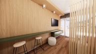 Dispozičně je apartmán řešen s důrazem na funkčnost, dostatek světla a přímé propojení interiéru s exteriérem prostřednictvím terasy. Obytný prostor nabízí místo pro kuchyňskou část, jídelní kout i relaxační zónu, navazuje koupelna s WC a vstupní část s úložným prostorem. Každý apartmán je orientován tak, aby maximálně využíval výhledy a klidnou atmosféru lokality.