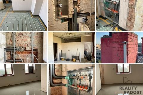 Osvětlení v LED technologii, nové měděné elektroinstalace, příprava pro kuchyňské spotřebiče i digestoř, betonový podklad pro podlahu – vše čeká na finální designový dotek nového majitele.