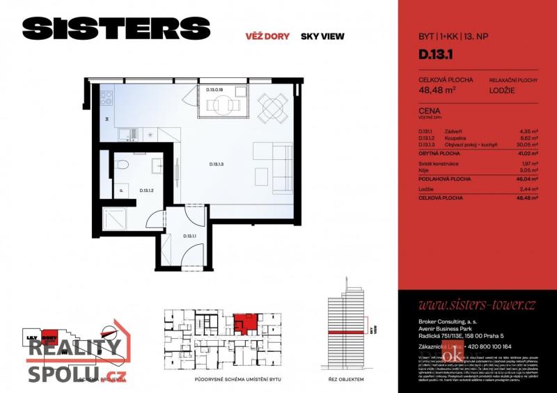 Na prodej byt 1+kk ve 13. nadzemním podlaží třetí nejvyšší budovy v ČR, projektu Sisters Tower Plzeň. Dům přináší technologický a komfortní standard, jaký v Plzni nemá obdoby. Byt je vybaven klimatizací, rekuperací, nízkoemisními okny a podlahovým vytápěním, díky čemuž zajišťuje ideální vnitřní prostředí po celý rok. Vše řízení systémem pro chytrou domácnost Loxone. Součástí každého z bytů je sklepní kóje a možnost dokoupení parkovacího stání v podzemních garážích. Projekt Sisters představuje výjimečný developerský projekt, který se stane novou dominantou města Plzně. Dvě elegantní výškové věže v moderním architektonickém pojetí nabídnou nadstandardní bydlení, kancelářské i komerční prostory v atraktivní lokalitě Náměstí Českých bratří, jen pár minut od historického centra města. Sisters propojuje městský život, komfort a prestiž v jednom harmonickém celku. Rezidenční část projektu je rozdělena do čtyř úrovní standardu, které umožňují vybrat si bydlení přesně podle nároků a životního stylu budoucích majitelů. Každý standard nabízí vysokou kvalitu provedení, liší se však rozsahem použitých materiálů, vybavením a úrovní komfortu. Byty v nejvyšších patrech pak mají možnost využívat společné klubové patro ve 23. a 24. patře, kde je k dispozici fitness, wellness s bazénem, dětský koutek a místa k relaxaci. Součástí projektu je také recepce ve vstupní lobby, denní bistro, podzemní parkoviště a mnoho dalšího. V projektu Sisters nabízíme byty od 1+kk až po 4+kk různých rozměrů i dispozic. Pro konkrétní nabídku nás neváhejte kontaktovat. Energetický štítek budovy je v současné době ve zpracování. Dle zákonné povinnosti je proto dočasně uváděna energetická třída G. Předpokládaná energetická náročnost budovy odpovídá třídě B.
