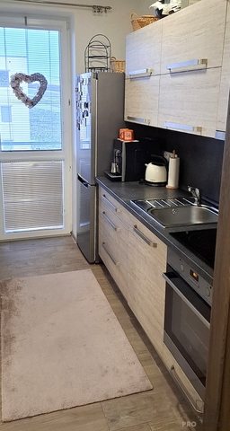 Nabízíme k prodeji krásný rekonstruovaný byt 2+1 s balkónem a sklípkem. Byt o velikosti 54m2 se nachází ve čtvrtém patře zatepleného panelového domu s výtahem. Dům se nachází v oblíbené a klidné lokalitě plné zeleně v sousedství nízkopodlažních revitalizovaných domů ve Velké nad Veličkou na úpatí Bílých Karpat. Byt má koupelnu se sprchovým koutem a samostatné WC. Kuchyň je vybavena zánovní kuchyňskou linkou a elektrickým sporákem s troubou a sklokeramickou deskou. Vytápění bytu i ohřev vody zajišťuje domovní kotelna. Dům je v profesionální správě (poplatky za služby cca 3.600Kč, z toho správa a fond oprav je 1750,- Kč). V současné době je byt pronajat již několik let bezproblémovému nájemníkovi, který si přeje pokračovat v nájmu. Proto je byt velmi vhodný na investici, kdy lze z bytu okamžitě získat příjem převyšující úrok na spořících produktech a zároveň využít předpokládaného růstu ceny nemovitostí. Pro bližší informace a prohlídku volejte 777 881 163 nebo napište zprávu a my se ozveme.