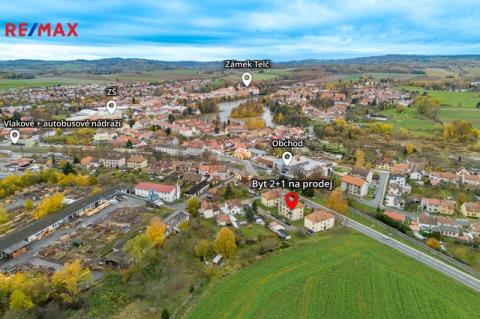 Nabízíme k prodeji byt o dispozici 2+1, který se nachází v 1. patře bytového domu v klidné části města Telč. Byt prošel rekonstrukcí – nové rozvody elektřiny, vody, odpadů i topení. Dále byly položeny nové vinylové podlahy včetně lišt.Topení zajišťuje vlastní plynový kotel, což přináší nízké provozní náklady a nezávislost na centrálním vytápění. Díky jižní orientaci oken je byt krásně světlý a působí velmi příjemně. Byt je připraven k okamžitému užívání – novému majiteli zbývá pouze dovybavit a pořídit kuchyň podle svých představ. K bytu náleží dvě sklepní koje a prostor za domem, který lze využít jako dílnu, sklad nebo zázemí pro hobby. Zájemci mají možnost přikoupit garáž – při koupi společně s bytem by byla celková cena 3 690 000,-Kč. Dům se nachází v klidné části Telče s výbornou dostupností do centra města (cca 10 minut chůze). V blízkosti se nachází obchod s potravinami, základní i mateřská škola, autobusová zastávka a také sportovní areál. Na dosah je i příroda a rybníky, ideální pro procházky a volnočasové aktivity. Historické centrum Telče (UNESCO) nabízí kavárny, restaurace a krásné prostředí pro každodenní život.