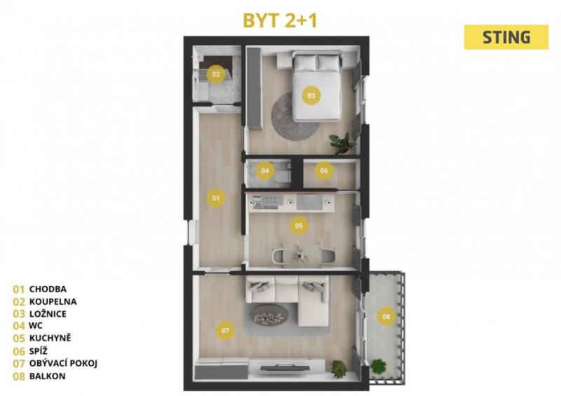 K prodeji, Byt 2+1, 53 m2 Ostrava, Francouzská