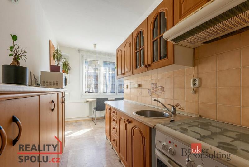 Dispozice nabízí dvě místnosti, kuchyň, koupelnu a toaletu. K bytu náleží také sklepní kóje.