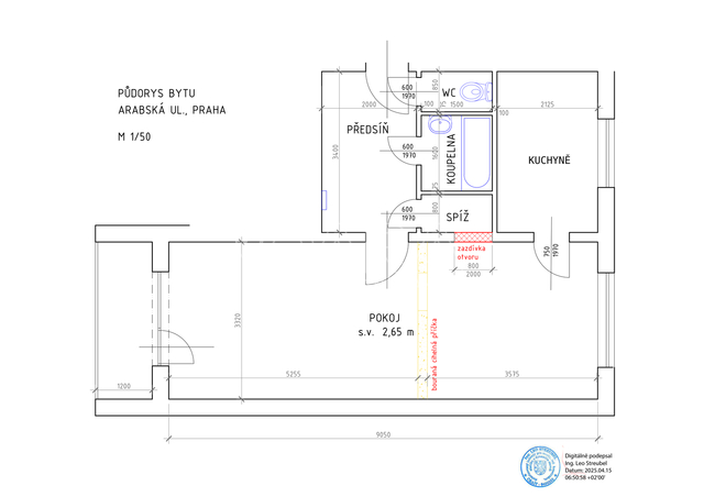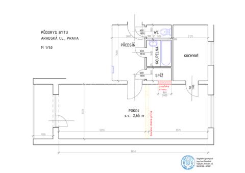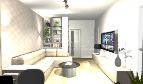 Původní dispozice bytu byla 2+1. Při rekonstrukci došlo k odstranění příčky mezi pokoji, díky čemuž je široká variabilita budoucího uspořádání. Nový majitel může zvolit některé z moderních řešení – například částečné rozdělení prostoru vestavěnou stěnou, případně variabilní členění pomocí posuvných panelů či skleněných stěn, které umožní flexibilně pracovat s prostorem podle aktuálních potřeb. Pokud byste však chtěli klasickou příčku a žádné další starosti a náklady, zajistíme pro vás její výstavbu bez dalších nákladů.