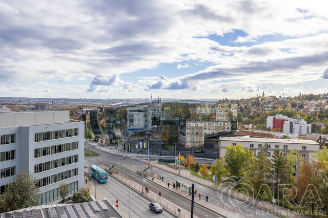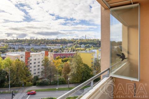 Byt je situován v posledním patře udržovaného panelového domu s výtahem, což zajišťuje dostatek světla, soukromí a ničím nerušený výhled. Ze zasklené lodžie se otevírá krásný pohled na Prahu včetně Pražského hradu, který dodává bydlení jedinečnou atmosféru.