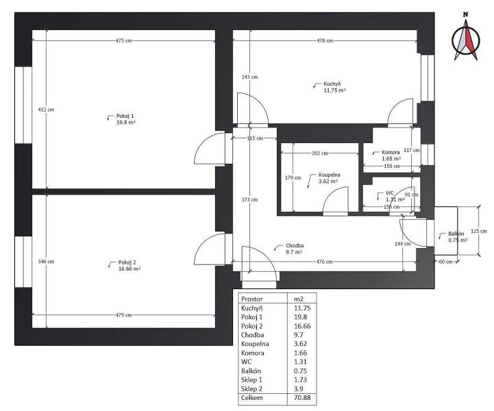 K prodeji, Byt 2+1, 74 m2 Pardubice, Luďka Matury