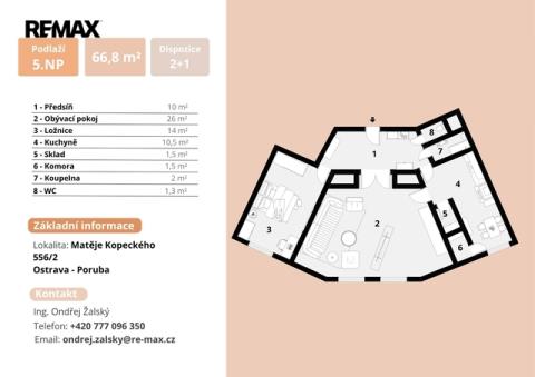 K prodeji, Byt 2+1, 68 m2, Ostrava, Matěje Kopeckého