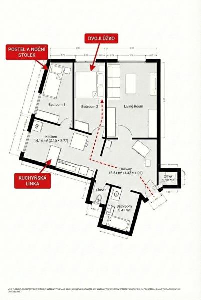 REZERVOVÁNO Prostorný a světlý byt 2+1 v srdci Žižkova – jedné z nejživějších a nejatraktivnějších pražských čtvrtí. Byt se nachází ve 4. patře zatepleného cihlového domu s výtahem, prošel kompletní rekonstrukcí a je připraven k okamžitému nastěhování. Byt se prodává včetně moderního a kvalitního vybavení – převzetí veškerého nábytku a spotřebičů. Osobní vlastnictví. Dispozice a interiér Prostorná vstupní předsíň s novou plovoucí podlahou nabízí dostatek úložného prostoru včetně praktické komory / šatny. Výjimečným bonusem je vlastní infrasauna – ideální pro regeneraci v soukromí domova. Samostatná kuchyň je vybavena moderními spotřebiči a poskytuje pohodlný prostor jak pro vaření, tak pro každodenní stolování. Světlý obývací pokoj s renovovanými parketami působí teplým a nadčasovým dojmem. Ložnice se dvěma okny nabízí klidné zázemí s výhledem do zeleně. Koupelna s vanou a pračkou je kompletně obložena novou dlažbou a obklady, toaleta je řešena samostatně. Třívrstvá komorová okna v celém bytě zajišťují vynikající tepelnou i hlukovou izolaci. Možnost rozšíření na 3+1 Příčka mezi ložnicí a kuchyní je nenosná – jejím odstraněním lze byt snadno rozšířit na dispozici 3+1. Stávající ložnici (19,9 m²) je navíc možné rozdělit sádrokartonovou příčkou na dvě plnohodnotné ložnice, každá s vlastním oknem. Půdorys s návrhem nového uspořádání naleznete ve fotogalerii. Dům a společné prostory Dům s vlastní kotelnou disponuje dvěma nezávislými vstupy – z Basilejského náměstí s parkem a možností parkování, a z Malešické ulice s klidným vnitřním dvorkem. V domě je kočárkárna, kolárna a sdílený balkon v mezipatře. Energetická třída D. Lokalita Žižkov nabízí nezaměnitelnou atmosféru autentického městského života obohacenou o rychle se rozvíjející gastronomickou a kulturní scénu. Tramvaj přímo u domu, Václavské náměstí 9 minut, metro Želivského 10 minut pěšky. Vše v docházkové vzdálenosti – obchody, poliklinika, pošta, OC Flora s multikinem. K relaxaci zvou parky Parukářka, Vítkov a Riegrovy sady s jedním z nejkrásnějších výhledů na Pražský hrad. Byt 73,4 m² | Sklep 4 m²
