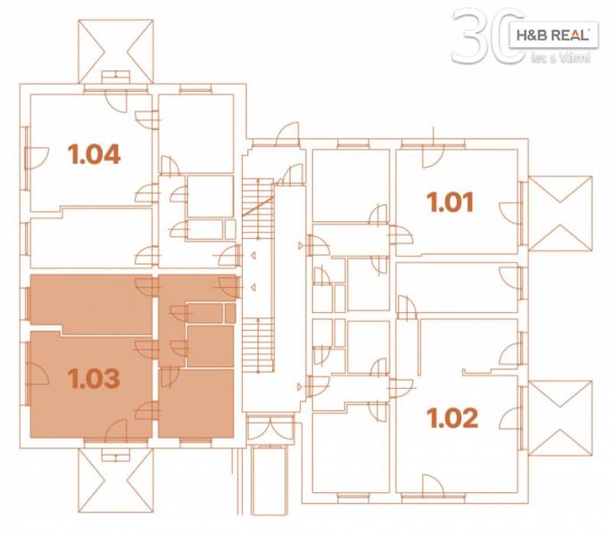 Byt č. C 1.03. se nachází v 1. NP a má dispozici 2+1. Plocha bytu: 74,0 m2. Sklep: 6,8 m2. Pozemek u bytu: 90,0 m2. Parkovací stání: 11,25 m2.