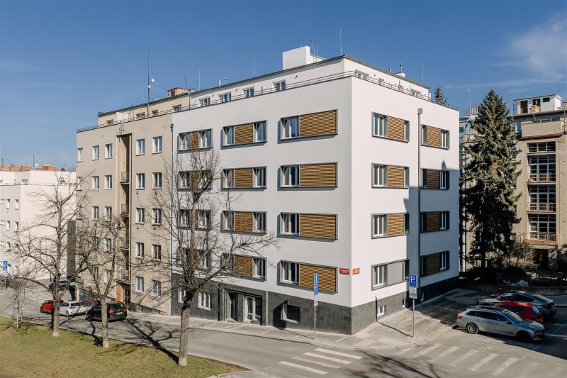 Nabízený byt č. 14 o dispozici 2+kk a celkové ploše 54,4 m² se nachází v pečlivě zrekonstruovaném činžovním domě, v 1. nadzemním podlaží. Součástí bytu je balkon o výměře 3,1 m² a sklepní kóje o velikosti 2,8 m². Byt je dokončen do standardu „fit out“, tedy k nastěhování – včetně finálních povrchů, sanitárního vybavení a přípravy pro instalaci kuchyňské linky. Nechybí dřevěné podlahy, nová okna a moderní koupelna. Celý dům prošel citlivou rekonstrukcí a rezidenti mohou nově využívat praktické společné prostory jako jsou fitness, sauna, kolárna, kočárkárna nebo klidný vnitroblok určený k odpočinku. Lokalita nabízí příjemné rezidenční prostředí s kompletní občanskou vybaveností v okolí. V docházkové vzdálenosti jsou kavárny, restaurace, obchody, školy, zdravotnická zařízení i zastávky MHD. Na dosah je také městská zeleň a parky, které vybízejí k odpočinku či sportu.