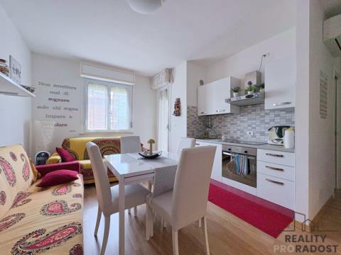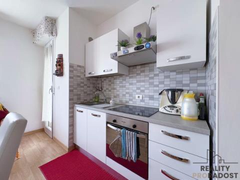 Dispozice bytu je praktická a funkční. Tvoří ji světlý obývací pokoj s otevřeným kuchyňským koutem, který plynule navazuje na obyvatelnou terasu, ideální pro venkovní posezení, snídaně na čerstvém vzduchu nebo večerní relax. Dále je zde ložnice s manželskou postelí a koupelna s oknem a sprchovým koutem, provedená v moderním a elegantním stylu. Díky rekonstrukci působí celý byt svěže, vzdušně a je připraven k okamžitému užívání bez dalších investic.