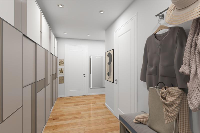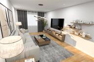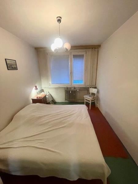 Po vstupu do bytu se ocitnete v chodbě o ploše 3,2 x 2 m ( 6,4 m2 ), z které se hned po pravé straně vstupuje do koupelny o ploše 1,6 x 1,2 m ( 1,9 m2 ) se sprchovým koutem a umývadlem, která je částečně oddělena od toalety o ploše 0,8 x 1,2 m ( 3,4 m2 ). Po celé levé straně chodby jsou umístěny původní vestavěné skříně. Proti vstupu do bytu se nachází ložnice o ploše 3,8 x 2,6 m ( 9,9 m2 ) a hned vedle po pravé straně je vstup do obývacího pokoje o ploše 4,8 x 3 m ( 14,4 m2 ) propojeného s kuchyňským koutem o ploše 2,1 x 2,2 ( 4,6 m2 ). Na podlaze všech místností, včetně koupelny a toalety je položena původní PVC podlaha. Orientace bytové jednotky je na jihozápad. V bytě je zavedena telefonní přípojka s možností instalace kabelové televize a internetu, topení je ústřední dálkové. K bytové jednotce ještě přináleží komora ( 1,2 m2 ), která se nachází na chodbě domu, hned vedle vstupu do bytu.
