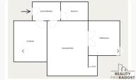 Nemovitost se skládá z praktické vstupní chodby, světlého obývacího pokoje, kuchyňského koutu,
