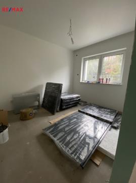 V 1NP se nachází bytová jednotka s dispozicí 2kk s užitnou plochou 43 m² s terasou, předzahrádkou a parkovacím stáním v ceně. Stav dokončení: obývací pokoj s kuchyní dlažba, bez kuchyňské linky, dokončená koupelna se sprchovacím koutem, umyvadlem, nábytkem a toaletou, dlažba.