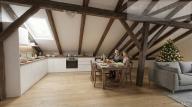 Stylový podkrovní byt 2+kk s přiznanými trámy – atraktivní bydlení v 3. NP! Představujeme novou nabídku bytu v našem komorním projektu, který vás nadchne svou atmosférou. Jednotky ve 3. nadzemním podlaží jsou navrženy v atraktivním podkrovním stylu s přiznanými dřevěnými trámy. Tento designový prvek dodává interiéru jedinečný charakter a pocit útulného domova, který v běžných novostavbách chybí. Výstavba je v plném proudu a směřuje do finále. Předpokládaný termín dokončení 3.NP je stanoven na konec dubna 2026 (v případě, že nenastanou nepředvídatelné komplikace). Byt č. 9 – dispozice 2+kk (42.83 m2) – cena 4.711.300 Kč (Unikátně řešený prostor s oddělenou ložnicí, ideální pro jednotlivce, pár i jako investice) (k dispozici také byt 1+kk Byt č. 11 (32,58 m2) a byt č. 10 – dispozice 1+kk s velkou ložnicí v nice téměř 2+kk (41,36 m2).) Všechny ceny jsou konečné a zahrnují kompletní právní servis i provizi RK. Proč zvolit bydlení právě zde? Design s duší: Přiznané trámy vytvářejí stylový kontrast s moderními materiály – bydlení, které se neokouká. Efektivní dispozice: I na menší ploše (42,83 m2) nabízíme plnohodnotné 2+kk, což je na trhu velmi žádaný a skvěle pronajímatelný formát. Poctivá stavba: Cihlový dům v kombinaci s moderním zateplením zajišťuje v podkroví celoroční tepelnou pohodu a ticho (PENB třída C – Úsporná). Parametry a lokalita: Parkování: Možnost dokoupení vlastního stání na soukromém parkovišti u domu. Dostupnost: Jen 400 m od vlakového nádraží a 500 m od centra obce – perfektní spojení klidu a pohodlí. Platební podmínky: 30 % ceny splatných po rezervaci, 70 % po podpisu Kupní smlouvy (individuální dohoda možná). Přijďte se přesvědčit na vlastní oči! Atmosféru podkroví s dřevěnými trámy je nejlepší zažít osobně přímo na stavbě. Domluvte si prohlídku ještě dnes a vyberte si byt, který nejlépe odpovídá vašim plánům. Získejte stylové bydlení v cihlové novostavbě již na jaře příštího roku! Upozornění: Fotografie označené hvězdičkou (*) v pravém dolním rohu jsou vizualizovány pomocí umělé inteligence a slouží jako ilustrace budoucího stavu s využitím designových prvků (trámů).