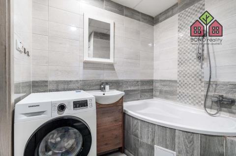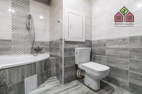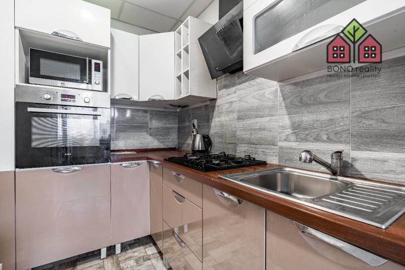Samotný byt o dispozici 2+kk je situován v 5. patře revitalizovaného panelového domu, který je zateplený, osazený plastovými okny a rekonstrukcí prošly i jeho vnitřní společné prostory, střecha a rozvody IS. Podlahová plocha bytu činí 40 m2 a sestává se z obývacího pokoje s kuchyňským koutem, ložnice, koupelny se společnou toaletou a vstupní chodby s přístupy do všech místností. Obývací pokoj je velice prostorný. V kuchyňské části je umístěná zánovní rohová kuchyňská linka s vestavěnými elektrospotřebiči -> plynový sporák, digestoř a elektrická trouba. Ložnice je standardních rozměrů a pohodlně zde lze umístit veškerý základní nábytek. Koupelna je vybavená rohovou vanou, umyvadlem s koupelnovou skříňkou, společnou toaletou a místem pro automatickou pračku. Koupelnové jádro je zděné a obložené moderním keramickým obkladem. Rekonstrukce bytu byla dokončena v prvním pololetí roku 2020, avšak bytu již vykazuje známky běžného opotřebení. Jeho stav je však stále více než dobrý. Orientace bytu je SZ. K jednotce náleží komora na patře a sklepní kóje v suterénu domu, o celkové výměře 5 m2.