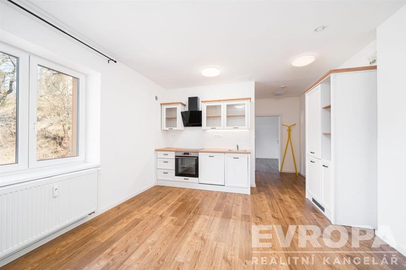 Za vstupními dveřmi je předsíň, ze které se vchází do koupelny se sprchovým koutem a toaletou, do kuchyně spojené s obývacím pokojem a do dalšího pokoje. K bytu náleží sklep a parkovací místo č. 3. Byt je po celkové rekonstrukci nové rozvody elektřiny vč. rozvaděče, rozvody vody i odpadů v plastu, dveřní obložky vč. dveří, nové podlahy vinil, mimo koupelny a toalety, kde je dlažba. Součástí bytu je zánovní kuchyňská linka vč. vestavěných spotřebičů (varná deska, el. trouba, myčka zn. Mora). Okna jsou plastová s trojskly a směrují na severozápad. Součástí společných prostor domu je sušárna/kolárna. Za domem je k dispozici zázemí pro posezení / relaxaci.