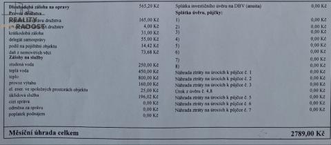 Měsíční náklady, počítáno na dvě osoby včetně fondu oprav cca 3.000 KČ.