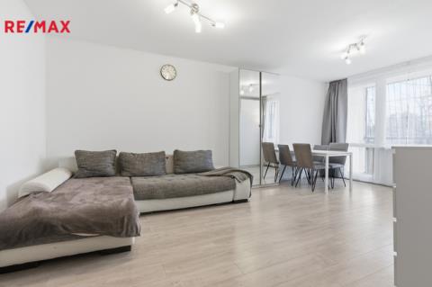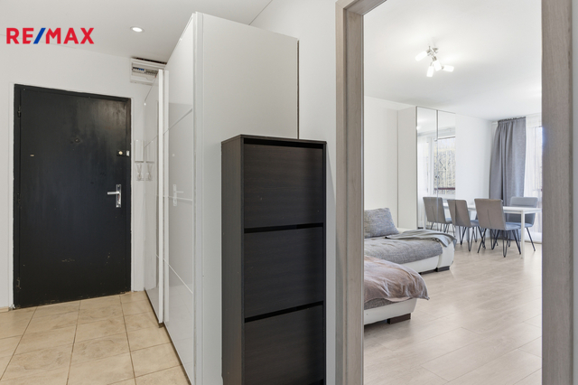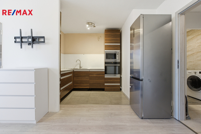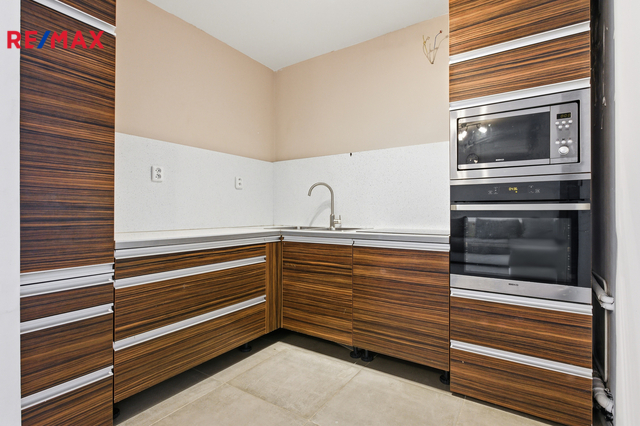 Nabízíme k prodeji byt v osobním vlastnictví o dispozici 2+kk s lodžií, v 1. nadzemním podlaží panelového domu s výtahem, na adrese Na Chobotě 1347/12, Praha 6 – Řepy. Plocha bytu činí 45,9 m², k bytu náleží lodžie o výměře cca 6 m² a dále sklepní kóje o velikosti 1,8 m² umístěná v suterénu domu. Byt se sice nachází v přízemí, ale díky umístění v posledním panelovém domě v zástavbě, mají okna i lodžie volný výhled a byt není stíněn okolními stavbami. Dispoziční řešení bytu zahrnuje obývací pokoj s kuchyňským koutem a vstupem na lodžii, samostatnou ložnici, koupelnu s toaletou a vstupní předsíň s úložným prostorem. Lodžie je přístupná z obytného prostoru a je opatřena bezpečnostní mříží. Podlahy jsou řešeny kombinací laminátové podlahy v obytných místnostech a keramické dlažby v kuchyňské části, předsíni a koupelně. Kuchyňská linka je vybavena vestavnými spotřebiči včetně elektrické trouby, mikrovlnné trouby a varné desky. Koupelna je zděná, obložená velkoformátovou dlažbou a obklady, s prostorným sprchovým koutem, závěsným WC a místem pro pračku. Dům je panelový, vybavený výtahem a prošel revitalizací. Má plastová okna, novou střechu a zateplenou fasádu. Technický stav domu je dobrý, průběžně udržovaný. Měsíční náklady cca 6.500,- Kč. Lokalita nabízí velmi dobrou dopravní dostupnost – přímo u domu se nachází konečná tramvajová zastávka Sídliště Řepy, která zajišťuje rychlé a přímé spojení do centra Prahy. V místě je kompletní občanská vybavenost včetně obchodů, škol, školek, zdravotnických zařízení a služeb. Parkování je možné v okolí domu na veřejných komunikacích. Byt je vhodný jak pro vlastní bydlení, tak jako investiční nemovitost k dlouhodobému pronájmu. Doporučuji osobní prohlídku.