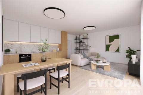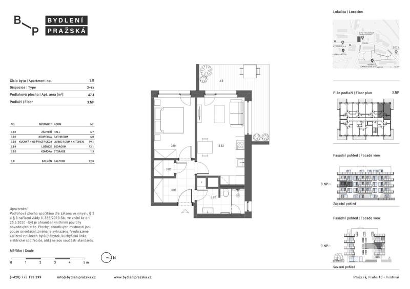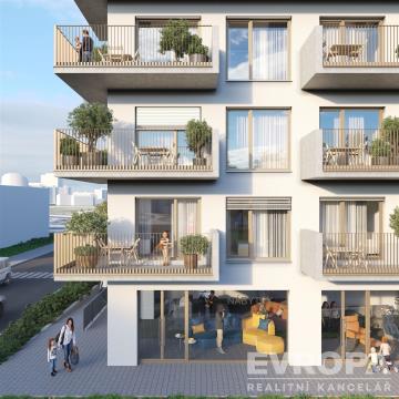 Byt se nachází ve 3.NP s výtahem. Byt o dispozici 2+kk s plochou 47,4 m2 a balkonem o velikosti 12,8 m2. Byt je umístěn na S,Z.