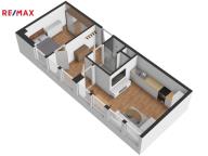 Výměry: obývací pokoj s kuchyňským koutem 20,8 m2, pokoj 13 m2, předsíň 8,8 m2, koupelna 4,8 m2, sklep 2,8 m2, svislé konstrukce 1,3 m2.
