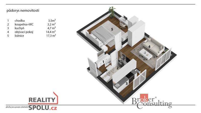 Byt se nachází na Jiráskově náměstí a jeho celková plocha činí (44,9 m²), sklep (4,71m²). Hned u vstupu Vás přivítá praktická vestavěná skříň s botníkovou stěnou, která zůstává k dispozici novým majitelům či nájemníkům. V koupelně zase potěší prostorná rohová vana, ideální pro večery, kdy si chcete dopřát chvilku klidu.