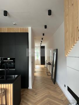 Vše je sladěno tak, abyste se zde cítili fantasticky. Současný majitel na vybavení a materiálech nešetřil. Dřevěné podlahy, nadčasové osvětlení, designová sanita, vestavné spotřebiče jako myčka, lednice, elektrická trouba, indukční varná deska, dále více než dost vestavěného úložného prostoru. Samozřejmostí jsou bezpečnostní vstupní dveře.