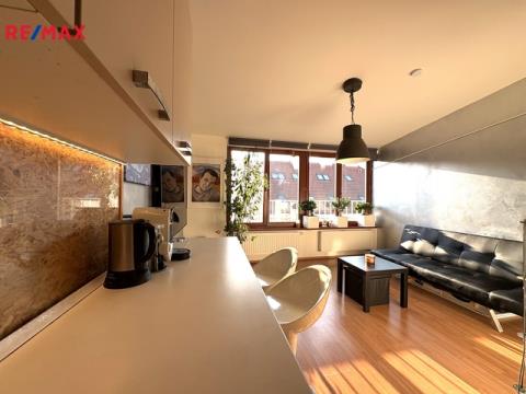 Nabídka prodeje moderního, příjemně prostorného, mezonetového, bytu s dispozicí 2+kk (upraveno na 3+kk) o velikosti 44 m2, který je situovaný v atraktivní lokalitě Prahy 3 – Žižkov (ulice Buchovcova) s výbornou dobrou dopravní dostupností do centra. Díky úpravě bytu se užitná plocha zvětšila na cca 50 m2. Byt leží v 5. a 6. NP cihlového domu s výtahem. Interiér spodního patra bytu tvoří vstupní předsíň, dále pak velký obývací pokoj s kuchyňským koutem (zařízená kuchyňská linka – sklokeramická varná deska, elektrická trouba, digestoř, myčka nádobí, lednice s mrazákem) a koupelna s vanou + WC. V patře se nachází dva samostatné pokoje (jeden pokoj vznikl doděláním jako menší 2. ložnice) a šatní místnost. Patra jsou propojena dřevěným schodištěm. Pokoje a předsíň jsou osazeny plovoucími podlahami. V koupelně je příjemná dlažba. Ohřev vody a vytápění zajišťuje vlastní plynový kotel. V bytě jsou 2 klimatizační jednotky. Díky velkým dřevěným oknům v obývacím pokoji a střešním oknům v patře je byt příjemně světlý a prosluněný. Součástí domu je uzavřená zahrada, která je k dispozici všem vlastníkům bytů v domě. Byt leží klidné lokalitě s kompletní občanskou vybaveností v dosahu (potraviny, pošta, lékárna, restaurace, kavárny, sportovní zařízení, ...) a výbornou dopravní dostupností do centra Prahy (zastávka tramvaje cca 150 m od domu). Pro více informací kontaktujte makléře nabídky. Prodávající si vyhrazuje právo vybrat kupujícího na základě jím zvolených kritérií.