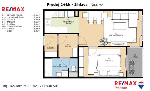Nabízíme k prodeji byt 2+kk o podlahové ploše 50,8 m² + lodžie 5,2 m², situovaný ve 4. nadzemním podlaží cihlového domu z roku 2007. Dům disponuje výtahem a bezbariérovým přístupem až do bytu. Byt se nachází v jedné z nejžádanějších částí Jihlavy, která kombinuje klidné bydlení s výbornou dostupností. Rychlé napojení na dálniční tahy, zároveň krátká vzdálenost do centra a dobré spojení MHD. Světlý a vzdušný Byt je orientovaný na jih do klidného vnitrobloku. Dispozice: obývací pokoj s kuchyňským koutem, ložnice, koupelna s WC, vstupní hala, chodba, lodžie a sklep. Byt si můžete projít i virtuální prohlídkou dostupnou v inzerátu. Velkým plusem bytu jsou bezproblémové sousedské vztahy, což je důležitý faktor, který dokáže bydlení výrazně zpříjemnit. V celém domě bude aktuálně probíhá výměna plynových kotlů – součástí prodeje je zde tedy již nový kotel Viessman Vitodens 050 kombi 25kW Wif. Dům má zároveň dobře fungující SVJ s naspořeným fondem oprav. Velkou výhodou je blízkost nemocnice. Přímo pod domem se nachází Hellerův rybník. V docházkové vzdálenosti je sportovně-relaxační areál Český mlýn a vyhlídka Zaječí skok, ideální pro sport i procházky. Parkování je bezproblémové přímo před domem. Autobusová zastávka 150 m. Neváhejte mě kontaktovat pro více informací a domluvení osobní prohlídky. Prodávající si vyhrazuje právo vybrat kupujícího na základě jím zvolených kritérií.