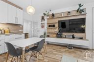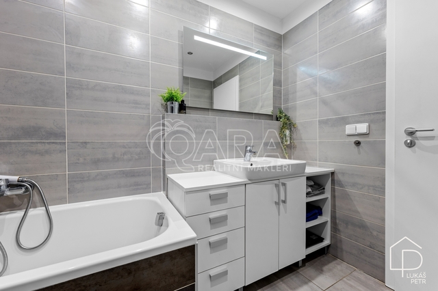 Byt 2+kk v domě z roku 2017 s lodžií, sklepem a vlastním venkovním parkovacím stáním. Nachází se ve vyvýšeném přízemí a je orientovaný na západ. Ulice před domem je slepá a slouží primárně pro rezidenty, provoz je tedy minimální a byt působí klidněji, než by člověk u Prahy čekal. Podlahová plocha je 51,7 m2. Dispozice je přesně taková, jaká má u 2+kk být – obývací pokoj s kuchyňským koutem, samostatná ložnice, koupelna s WC a komora přímo v bytě. Úložné prostory jsou řešené nejen sklepem, ale i komorou, která v podobných dispozicích často chybí. Stav bytu je výborný. Dům má výtah a energetická náročnost budovy je třídy B. Uhříněves je praktická lokalita pro každodenní život – v místě je kompletní vybavenost a zároveň rychlé napojení na dopravu. Vlakem jste na Hlavním nádraží zhruba za 17 minut a autem jste na D1 do několika minut. V okolí jsou také lesoparky a kousek i letní bazén. Pro více informací mě neváhejte kontaktovat. Budu se těšit na prohlídkách, Lukáš Petr