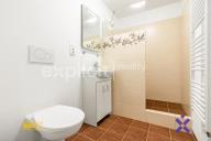 Po vstupu do apartmánu se ocitnete v chodbě se skříní, která poskytuje dostatek úložného prostoru. Po levé straně se nachází koupelna spojená s toaletou, vybavená sprchovým koutem a topným žebříkem, vše v moderním a čistém provedení.