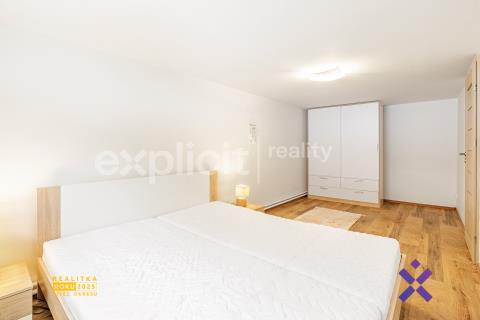 Z obývacího prostoru je vstup do ložnice, ve které se nachází manželská postel, velká šatní skříň, poskytující dostatek komfortu i úložného prostoru.