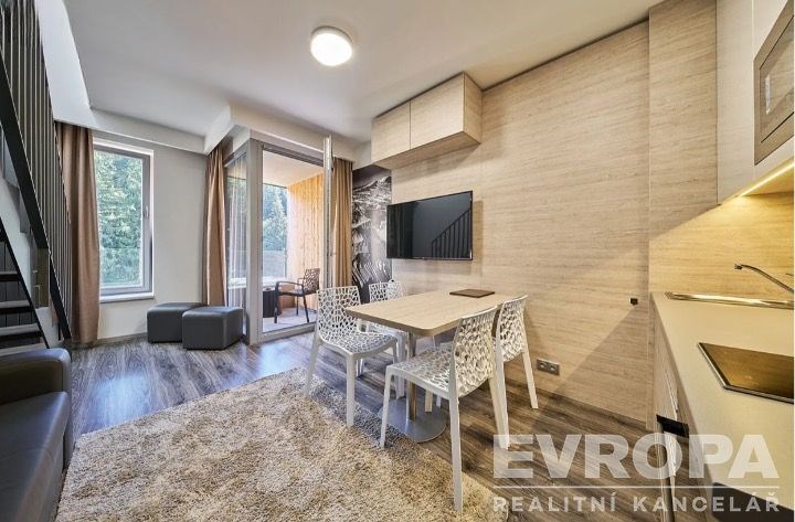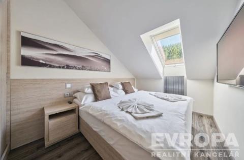 Pokud hledáte ideální místo pro celoroční rekreaci nebo zajímavou investici do pronájmu, unikátní hotelový koncept soukromých apartmánů v centru Pece pod Sněžkou je skvělou volbou. Nabízíme k prodeji mezonetový byt v osobním vlastnictví o dispozici 2+kk a celkové ploše 56 m², který se nachází ve 4. a 5. patře moderního čtyřhvězdičkového hotelu PECR DEEP. Apartmán nabízí prostornou předsíň, samostatné WC a světlý obývací pokoj s kuchyňským koutem a jídelním stolem. Obývací část je vybavena rozkládací sedačkou pro dvě osoby a poskytuje příjemné zázemí pro relaxaci po dni stráveném na horách. Po vnitřním schodišti se dostanete do podkroví, kde se nachází ložnice a prostorná koupelna s velkoformátovými obklady, vanou, umyvadlem a přípravou na pračku. Kuchyň je plně vybavena spotřebiči – lednice s mrazákem, mikrovlnná trouba, varná deska, trouba i myčka nádobí. Obě obytné místnosti jsou vybaveny Smart TV a vstup do apartmánu je zajištěn moderním kartovým systémem. Součástí apartmánu je také uzamykatelná komora pro uložení osobních věcí, parkovací stání v kryté garáži v suterénu hotelu a samostatný sklep, ideální pro uskladnění kol nebo lyží, včetně vyhřívaného držáku na lyžařské boty. Hotelové služby a wellness Velkou výhodou projektu je zázemí hotelového komplexu. V sousední budově PECR WELL se nachází moderní wellness centrum o ploše přibližně 450 m², které nabízí: vnitřní i venkovní vířivku několik druhů saun parní lázně relaxační zóny možnost privátního wellness V přízemí hotelu je k dispozici recepce, restaurace a prostorná dětská herna. Investiční potenciál Velkou výhodou je možnost uzavření pachtovní smlouvy, která umožňuje apartmán v době nepřítomnosti majitele pronajímat prostřednictvím profesionální správy hotelu. Díky celoroční atraktivitě Pece pod Sněžkou a vysoké návštěvnosti Krkonoš představuje apartmán zajímavou investiční příležitost s potenciálem pravidelného výnosu z krátkodobých pronájmů, při zachování možnosti vlastního využití. Lokalita Pec pod Sněžkou patří k nejvyhledávanějším lokalitám pro celoroční rekreaci na českých horách. Skiareál je ideální pro milovníky sjezdového i běžeckého lyžování. Díky své poloze v blízkosti nejvyšší hory České republiky – Sněžky – zůstává destinace atraktivní po celý rok a nabízí široké spektrum aktivit, kvalitní gastronomii i jedinečnou horskou atmosféru.