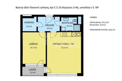 Hledáte příjemné bydlení s dobrou dopravní dostupností i občanskou vybaveností? Je zároveň vaší prioritou téměř nový byt v několik let staré novostavbě? Pak je pro Vás ideální možností koupě bytu 2+kk o podlahové ploše 56 m2, ke kterému navíc přísluší více než třímetrová lodžie. Tento byt se nachází v pátém nadzemním podlaží bytového domu v projektu Element Letňany, který je situován v Tupolevově ulici kousek od obchodního centra Letňany. Jistě oceníte jeho prosvětlenost díky západní orientaci oken. A také uvítáte rekuperační jednotku, díky které máte čerstvý vzduch i bez nutnosti větrání. Byt je vám k dispozici nezařízený, můžete si jej tak uzpůsobit podle vlastních představ. V lokalitě naleznete potřebnou občanskou vybavenost buď přímo v dochozí vzdálenosti nebo několik zastávek MHD. Autobusovou zastávku vč. nočních spojů máte nedaleko domu, z ní se dostanete za pár minut na metro linky C - Letňany, případně na metro linky B - Vysočanská či Palmovka. V centru města na Václavském náměstí jste do půl hodiny. Jako řidiči parkujete v okolí domu na zónách placeného stání a máte odtud blízký nájezd na dálnici D8 a Městský okruh s napojením na dálnice D10 a D11. Přijďte se sami podívat, jak vám byt i lokalita vyhovují.
