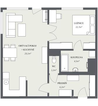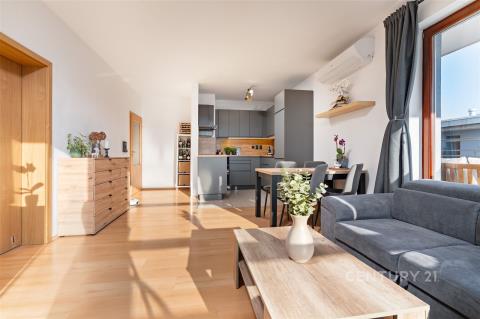 Představujeme vám výjimečný byt o dispozici 2+kk a užitné ploše 57 m², umístěný v 5. nadzemním podlaží moderního domu s výtahem, který nabízí harmonické spojení moderního designu, dostatku přirozeného světla a nadstandardního venkovního prostoru.